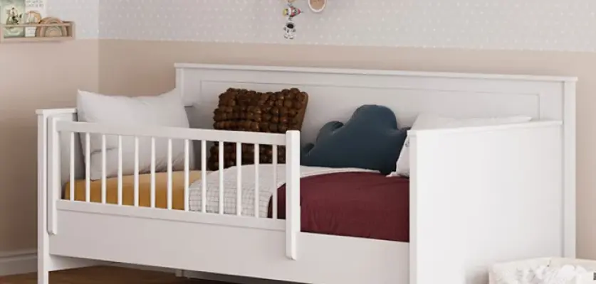 Beyaz tonların hakim olduğu bu özel tasarım, odaya aydınlık ve geniş bir görünüm kazandırırken, sade çizgileriyle göz yormayan bir estetik oluşturur. Huzurlu yapısı sayesinde çocukların hem dinlenebileceği hem de keyifle vakit geçirebileceği bir ortam sağlar.